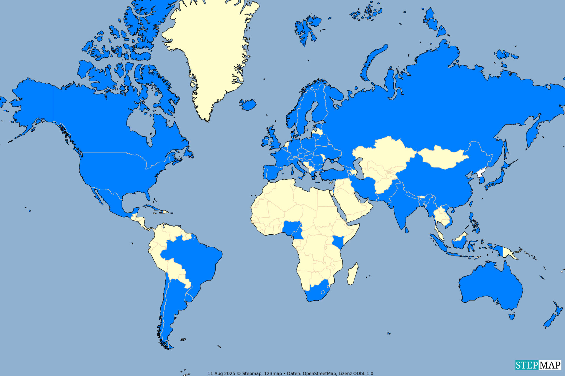 beige: non-members (yet). Please note that some African or Latin American countries hold “indirect” membership through their regional organisations